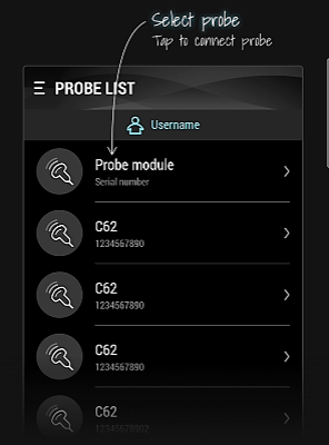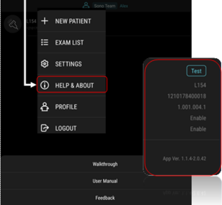 8. To check probe information, click the list icon on the upper left corner and choose “Help & About” for complete information.