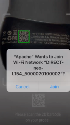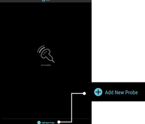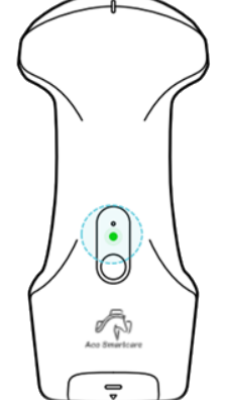 - To turn on the device: press the power button on the probe. A blinking green light indicates the device is on and waiting to be connected.